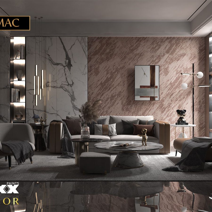 Mixx Mac is a water based decorative paint, its formula is based on high grade special effect pigment with Mica. It produces velvet like effect that goes in harmony with the required outcome and it gives the shadow and elegant feel for the finished surface