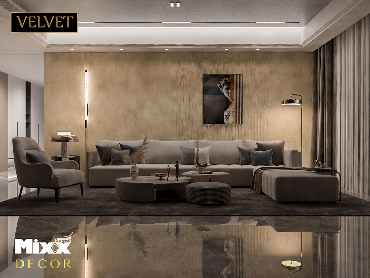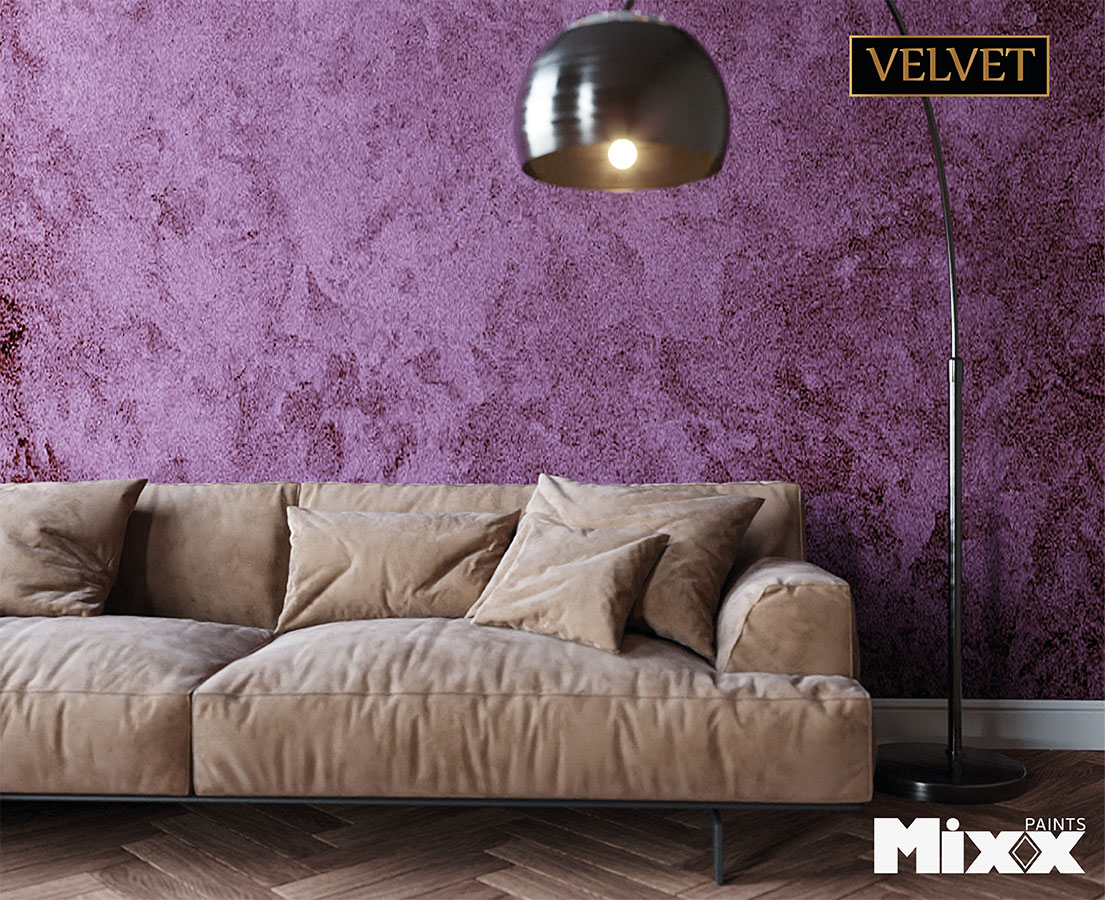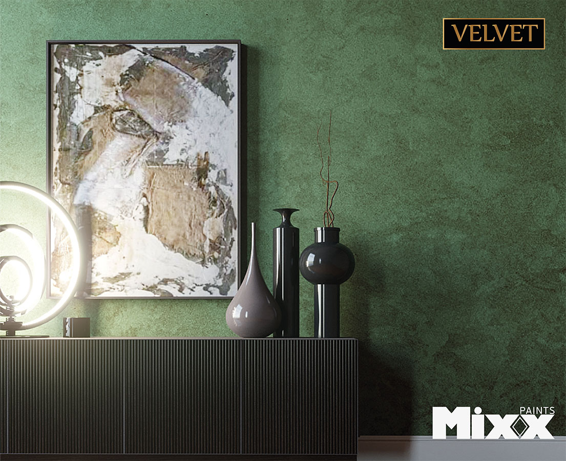 Mixx Velvet is a water based decorative paint. It is formulated using high grade special effect pigments. It produces a particular shimmering finish and creates velvet effect sutiable for both traditional and modern styles